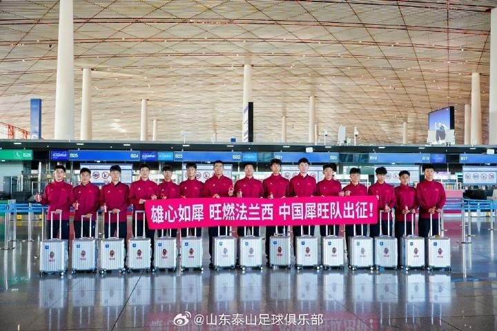 出征仪式上,队员们精神饱满,整装待发。中国犀旺队主教练崔鹏在出征前鼓励队员们,展现中国青年风采,虚心学习,拼搏进取,希望大家在法国刻苦训练,多与当地球员教练交流,全面提升自身技战术水平,积累宝贵经验。山东泰山足球俱乐部副总经理宿茂臻表示希望小队员们珍惜平台,保持谦逊好学态度,认真学习欧洲先进技战术与科学训练方法,更要坚守“忠诚担当、感恩报国、精诚团结、纪律严明、坚韧不拔、勇攀高峰”的泰山足球精神。队员代表段飞达、王梓丞表示,由衷感谢中国足协、中足联、山东足协、山东泰山足球俱乐部、泰山足校及欧塞尔俱乐部给予的宝贵机会。我们必将全力以赴,以最饱满的热情投入训练与比赛,珍视每一次比赛的机会,积极学习欧洲足球的优秀文化、拓宽国际视野,全力展现中国年轻球员的拼搏姿态与精神风貌。
